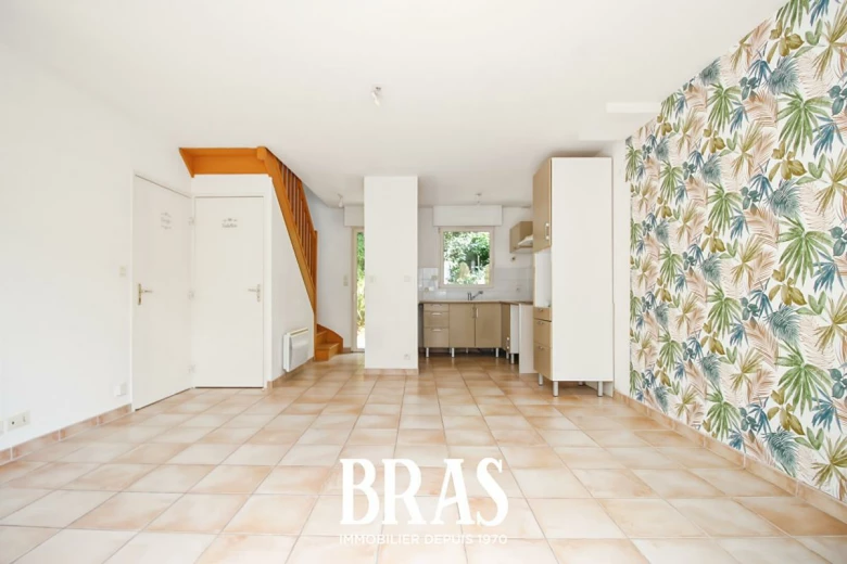 Au fond d'une impasse, elle s'ouvre sur une pièce de vie traversante et donnant de plain-pied sur le jardin, une cuisine meublée.