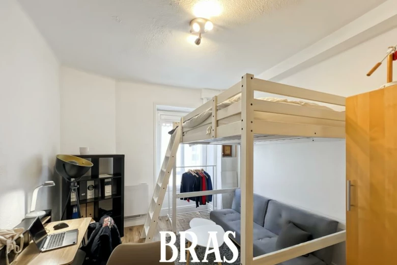Rue Maréchal Joffre - À proximité immédiate des transports en communs et du centre ville, appartement de type 1 MEUBLE de 18,00m² situé au 2ème étage sans ascenseur et comprenant : entrée sur pièce de vie avec kitchenette aménagée et équipée (plaque de cuisson, micro ondes et réfrigérateur table top), une salle d'eau avec douche, meuble vasque et WC.