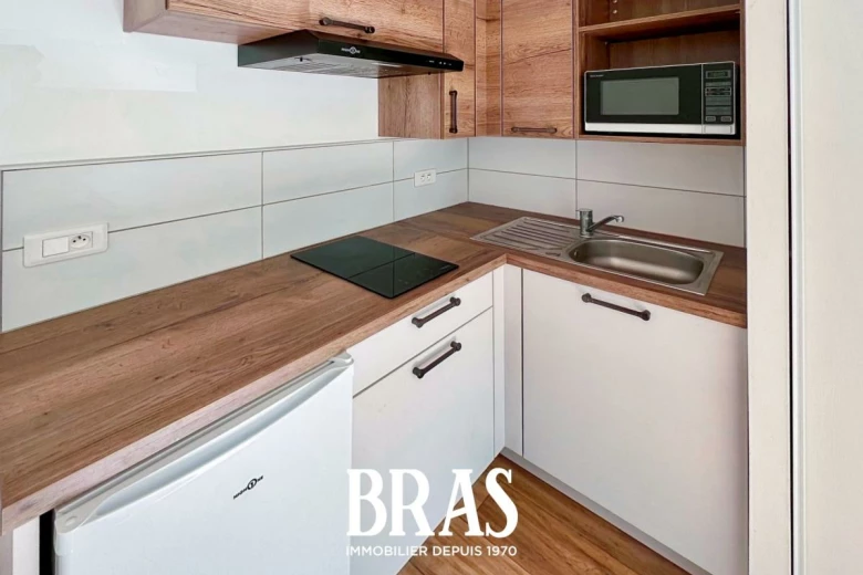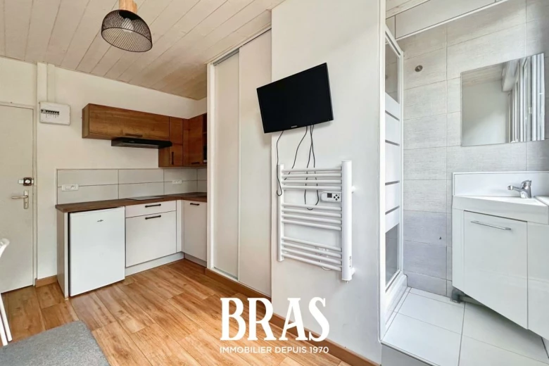 Rue de la Patouillerie - Dans une résidence proche des transports en commun (bus ligne C2) et des commerces, une chambre MEUBLÉE en parfait état de 10,10 m² situé en rez-de-chaussée surélevé et comprenant : pièce de vie/coin cuisine aménagé et équipé (plaques de cuisson, réfrigérateur table top, hotte et micro- ondes), une salle d'eau avec douche, lavabo et WC COMMUNS sur le palier.
