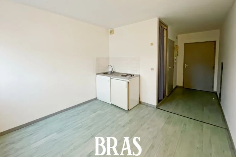 Avenue du Séquoïa - Situé dans une résidence de 1993, appartement de type 1 de de 16,31 m² situé au 2ème étage avec ascenseur et comprenant : une entrée avec placard, un espace de vie avec cuisine aménagée et équipée (plaques de cuisson électriques et réfrigérateur table top), une salle d'eau avec douche, lavabo et WC.