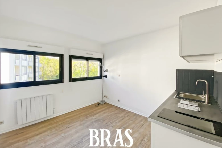 Avenue du Séquoïa - Dans une résidence calme, à proximité immédiate des facultés et des transports en commun (ligne bus 26 ou ligne tramway 2), un appartement de type 1 de 16,20 m² situé en rez-de-chaussée surélevé et comprenant : une entrée avec placard, une pièce principale de 13,29m² avec kitchenette aménagée et équipée (2 plaques électriques et réfrigérateur table top), une salle d'eau avec douche, lavabo et WC. Eau chaude et chauffage individuels électriques. Une place de parking extérieure privative complète ce bien.