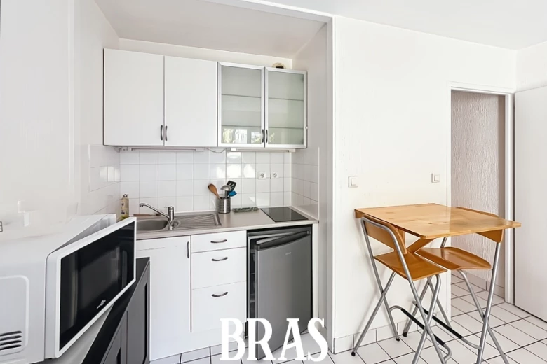 Appartement meublé de type 1 de 20m², situé en rez-de-chaussée dans la cour de l'immeuble et comprenant : Une entrée avec placard, une pièce de vie avec une cuisine aménagée et équipée (plaques de cuisson, réfrigérateur et micro-onde) une salle d'eu avec une douche et WC. Une terrasse.