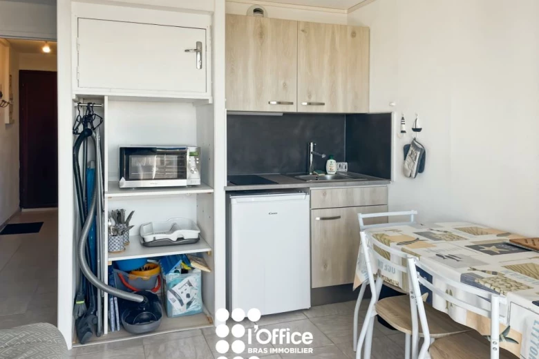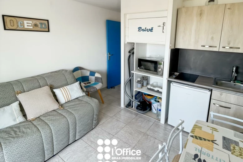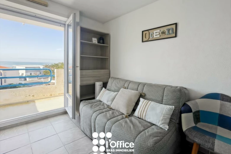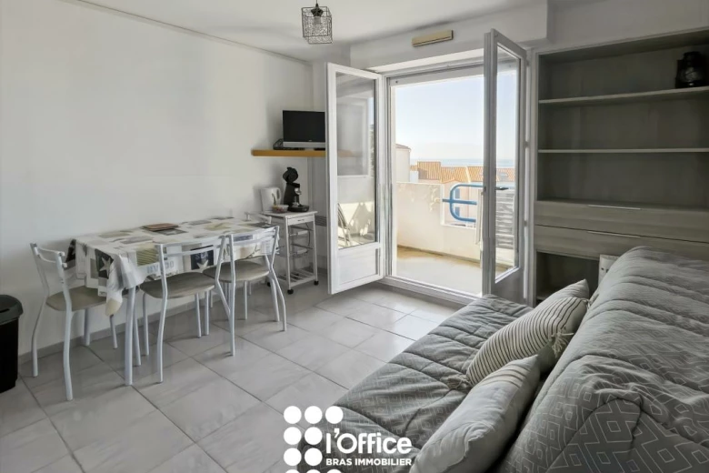 Profitez d'une vue mer exceptionnelle avec cet appartement meublé de type 1 bis de 20 m², récemment rénové. Il se compose d'une entrée, d'une pièce de vie lumineuse avec kitchenette équipée et aménagée, ainsi que d'un balcon de 4,76 m² idéal pour profiter du soleil. Un coin nuit séparé avec rangements, une salle d'eau avec WC complètent ce bien. Stationnement facile.