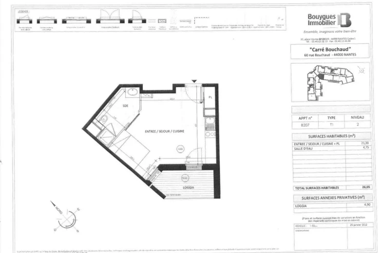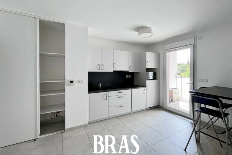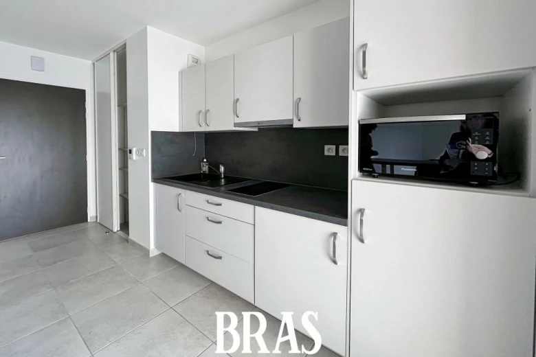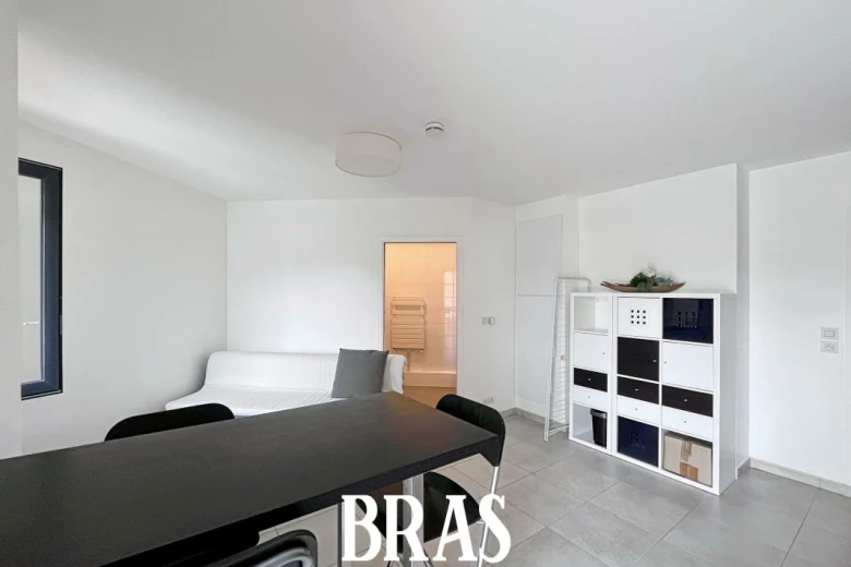 Rue Bouchaud - Dans un immeuble de 2015 de standing appartement MEUBLÉ de type 1 de 26,05 m² situé au 2ème étage avec ascenseur et comprenant : entrée avec placard sur pièce de vie de 21,30m² avec cuisine aménagée et équipée (plaques induction, hotte, lave linge, réfrigérateur et micro