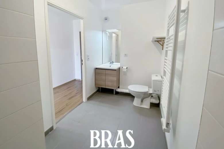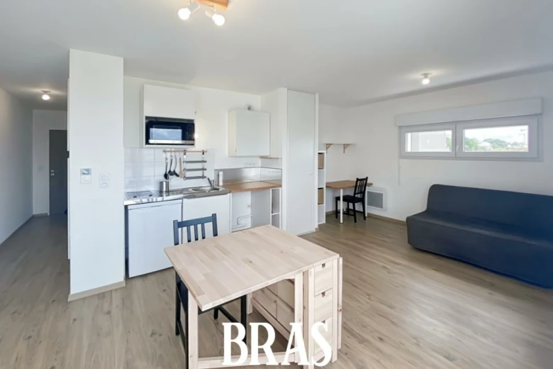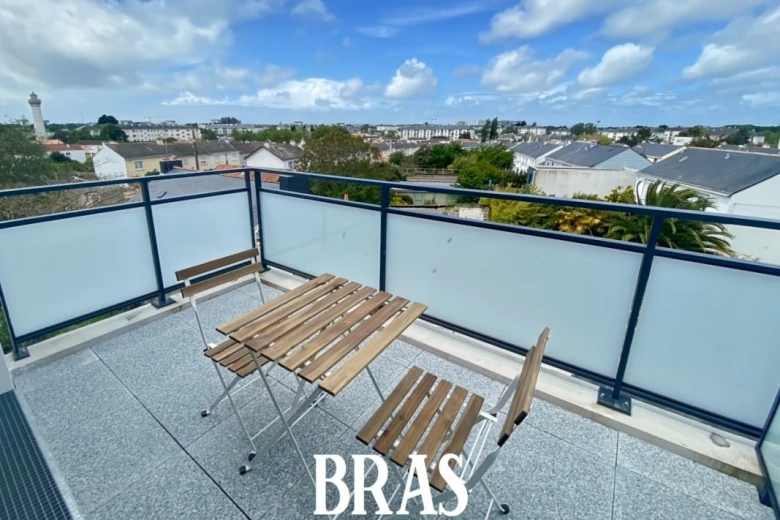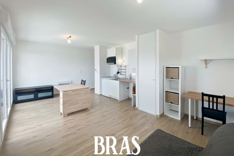 SAINT-NAZAIRE au 3ème étage avec ascenseur d'une résidence récente, un appartement MEUBLE de type 1 de 30 m² comprenant une entrée avec placard, une pièce de vie avec cuisine aménagée et équipée (plaque de cuisson vitrocéramique, four micro-ondes/Grill) donnant sur un balcon de 5 m², salle d'eau/wc.