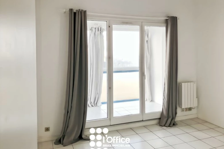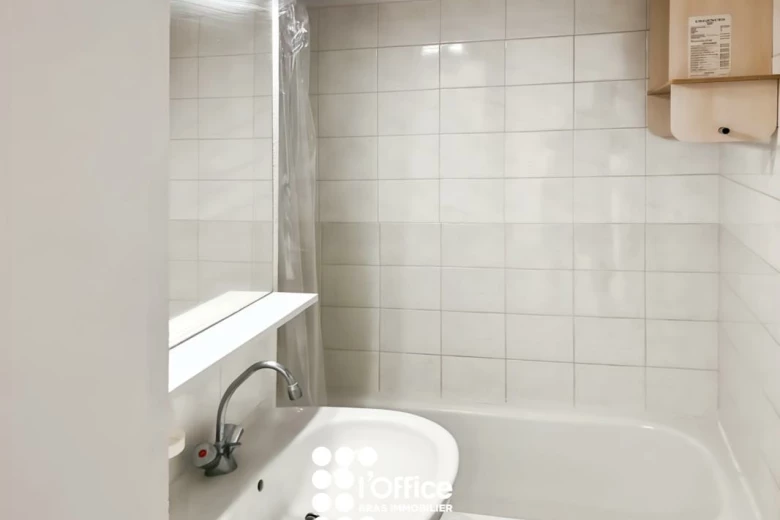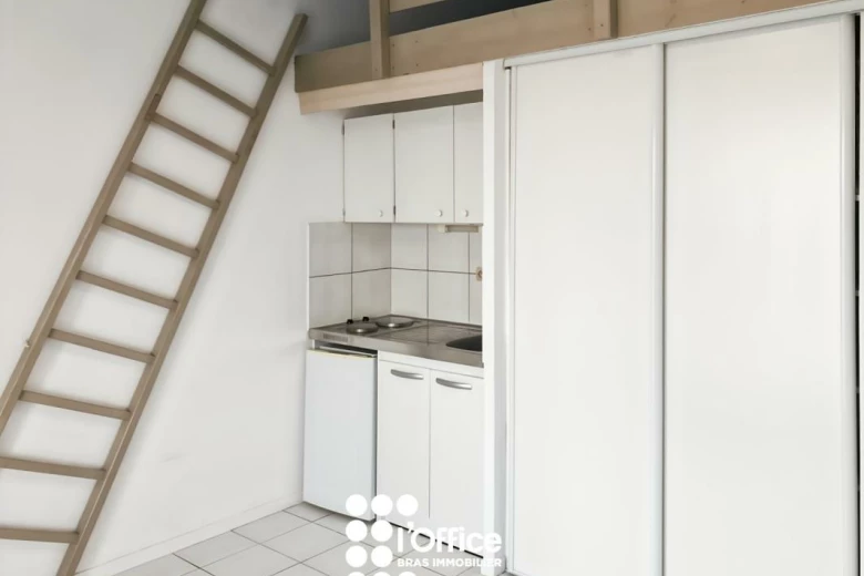 Appartement T2 de 24.56m² situé au 2ème étage sans ascenseur (dernier étage), comprenant : un hall d'entrée, un séjour avec coin cuisine et mezzanine, une loggia 6.71 m², une salle de bains, un WC séparé, une chambre.