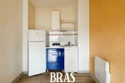 Situé dans une résidence de 1995, au 1er étage sans ascenseur, un appartement de type 2 comprenant une entrée avec placards, une cuisine aménagée et équipée (plaques de cuisson gaz et réfrigérateur) donnant sur séjour, une salle de bains (avec branchement machine à laver), une chambre, w.c séparés. Un garage au sous-sol.