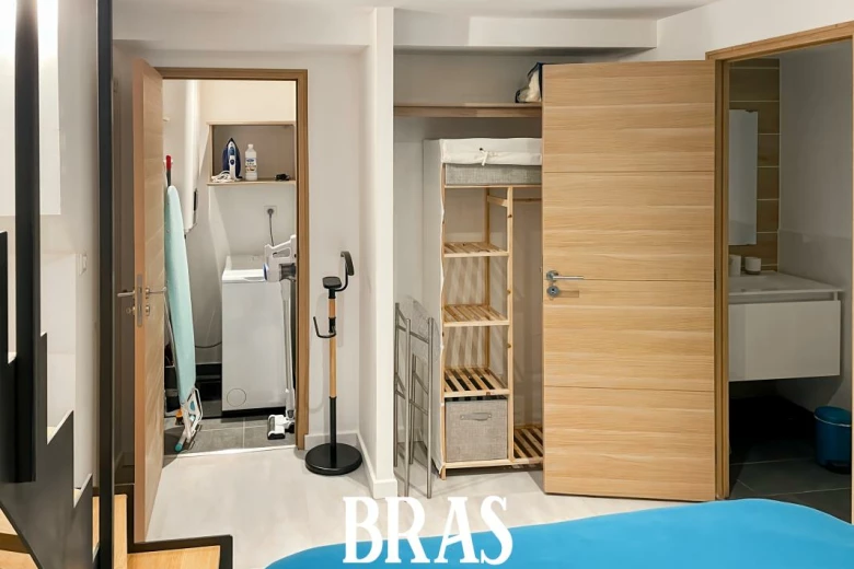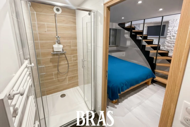 Appartement 2 pièces (32.80m²) en souplex meublé comprenant: une pièce de vie avec kitchenette, placard, w.c séparés. A l'étage inférieur: une chambre avec placard, une petite buanderie et une salle d'eau.