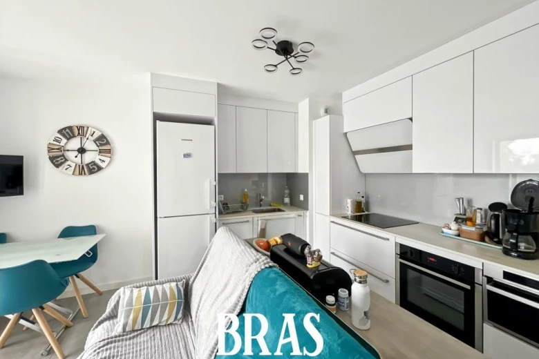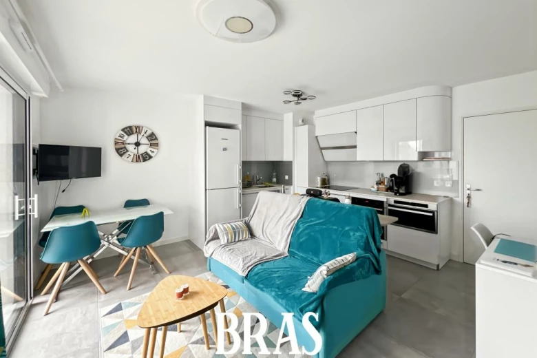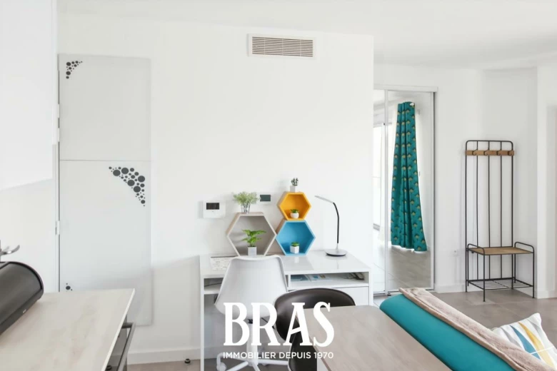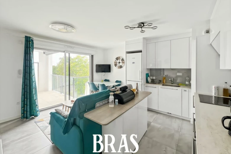 Dans une résidence récente de très bon standing, situé dans un quartier très agréable au 3ème étage avec ascenseur, un appartement de type 2 MEUBLÉ de 39.2 m² comprenant : une pièce de vie de 22.3 m² exposée Sud-Ouest avec cuisine aménagée et équipée (réfrigérateur, four, plaques induction, micro-onde, hotte et lave-vaisselle) donnant sur un balcon de 6 m² avec une vue dégagée, 1 chambre de 10.7 m² (avec placard), salle d'eau, WC séparés.