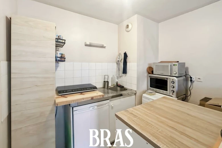 Dans une résidence calme, au pied des transports (chronobus ligne C6), appartement de type 2 de 39,64m² situé au 1er étage avec ascenseur et comprenant : une entrée avec placard, un séjour de 20,98m² avec cuisine aménagée et équipée (plaques de cuisson et réfrigérateur table-top), donnant sur une terrasse de 6,10m² exposée Est, une chambre de 9,43m² avec placard, une salle de bains avec baignoire et meuble vasque, WC séparés.