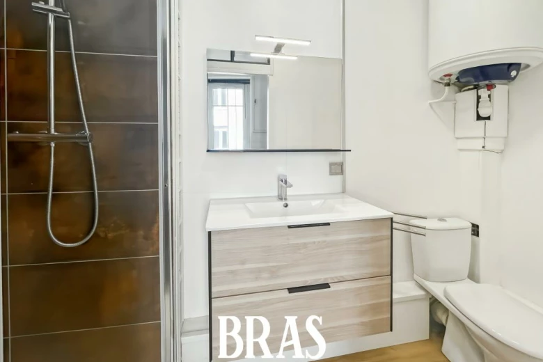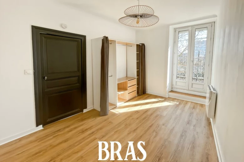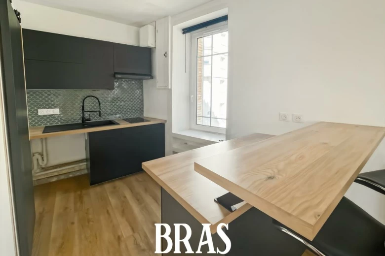 Boulevard de Stalingrad - Dans une résidence à proximité immédiate du tramway ligne 1, appartement de type 2 de 39,08m² situé au 1er étage sans ascenseur et comprenant : entrée avec placard, pièce de vie avec cuisine aménagée et équipée (plaques vitrocéramiques 2 feux, hotte, réfrigérateur table top), une chambre, une salle d'eau avec douche, meuble vasque et WC.