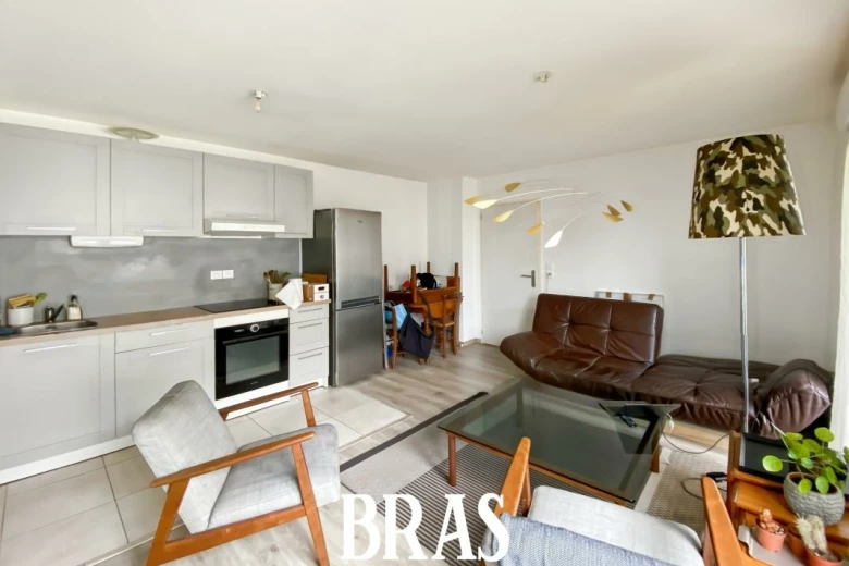 Rue Félix Faure - Dans une résidence récente, à proximité immédiate des transports en communs (tramway ligne 3 et bus ligne n°26) ainsi que du centre ville, un appartement de type 2 non meublé de 40,93m² situé au 2ème étage avec ascenseur et comprenant : une entrée avec placard, un séjour de 21,31m² avec cuisine aménagée et équipée (hotte, four et plaque de cuisson vitrocéramique), donnant sur un balcon de 2,89m² exposé Est, une chambre de 11,55m², une salle d'eau avec douche, meuble vasque et WC.
