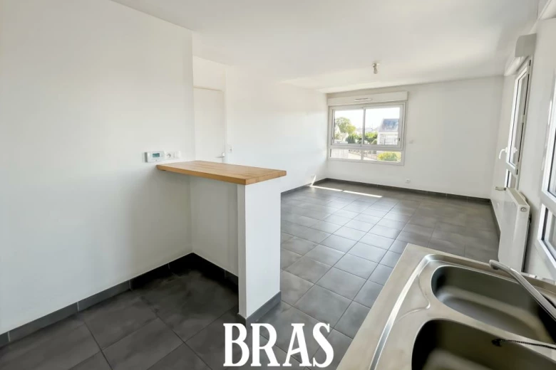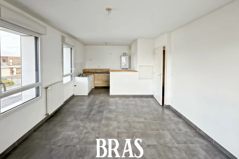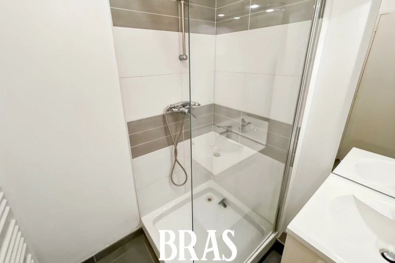Appartement T2 d'environ 40m2 au 1er étage. Il comprend une entrée avec placard, un séjour avec coin cuisine aménagée et équipée (plaques), une chambre avec placard, une salle d'eau (douche et vasque sur meuble), un wc séparé.