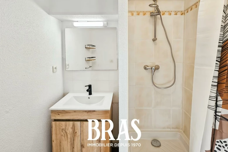 Appartement T2 d'environ 42 m² situé au 2ème étage avec ascenseur. Comprenant: une entrée avec placard, une pièce de vie lumineuse donnant accès au balcon, une cuisine ouverte, équipée et aménagée (plaque de cuisson et hotte), une chambre, une salle d'eau avec douche et meuble vasque, WC séparés. Un box en sous-sol complète ce bien.