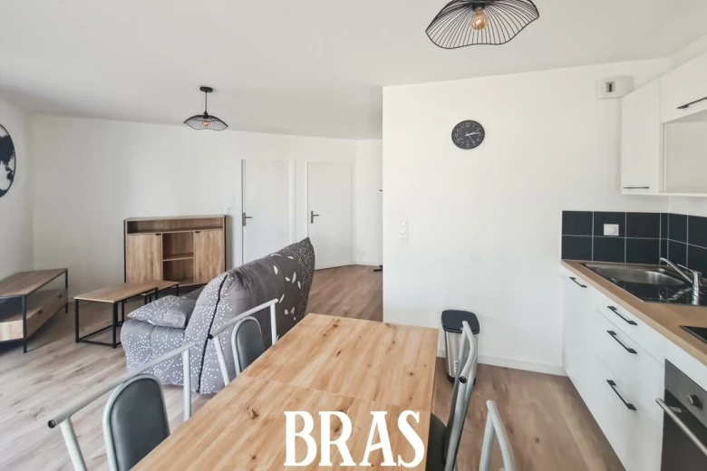 Dans une résidence récente, situé au 1er étage avec ascenseur, un appartement meublé 2 pièces de 41m² comprenant une entrée, une pièce de vie avec cuisine aménagée et équipée (plaques de cuisson, hotte, four, réfrigérateur congélateur, machine à laver) donnant sur une loggia de 5.70 m², une chambre de 11.30 m², une salle d'eau (douche et meuble vasque) avec WC. Une place de parking au sous-sol. A proximité du pôle Océane.