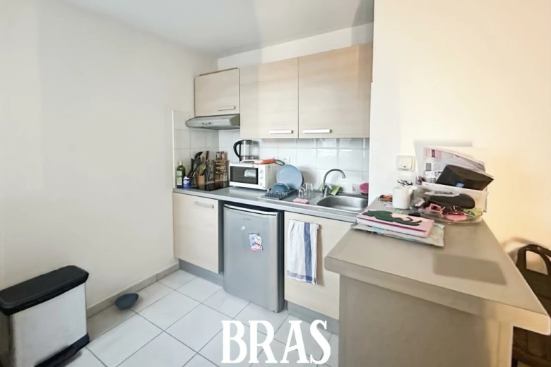Dans une résidence clame, au pied des commerces et des transports en communs (bus ligne n°10, 11, 12), appartement de type 2 de 41m² situé au 3ème étage avec ascenseur et comprenant : entrée sur séjour de 19,10m² avec cuisine aménagée et équipée (plaques de cuisson et réfrigérateur table-top), donnant sur un balcon de 4,30m² exposé Nord-Ouest, dégagement avec placard, une chambre de 10,10m² avec placard, une salle de bains avec une baignoire et un meuble vasque, WC séparés.