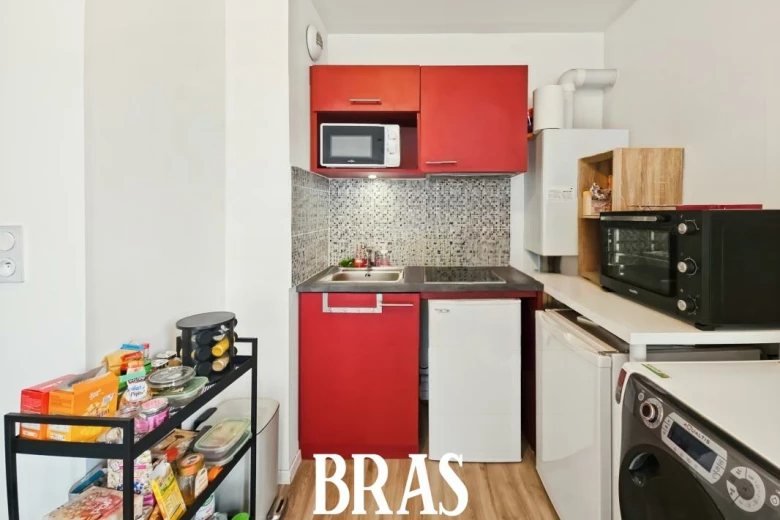 Situé au 1er étage d'une petite résidence avec ascenseur, appartement de type 2 de 42.70 m² comprenant une pièce de vie de 24.80 m² avec coin cuisine équipé (plaques de cuisson, hotte, réfrigérateur) donnant sur un balcon de 8m² exposé sud-ouest, une chambre séparée de 12.80 m², salle d'eau, WC séparés.