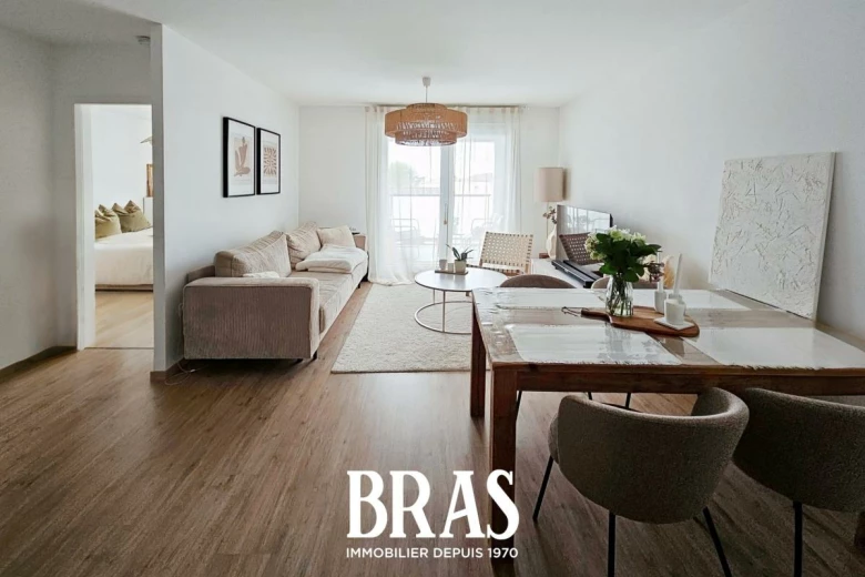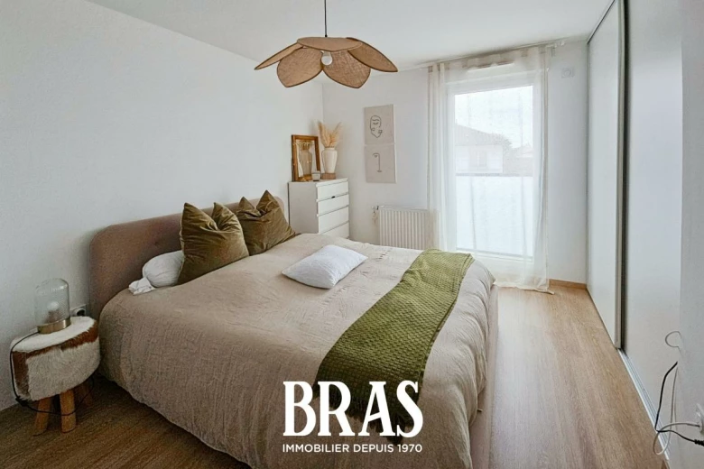 Dans une résidence récente de 2021, situé au 1er étage avec ascenseur, un appartement de type 2 de 42.26m² comprenant une pièce de vie avec cuisine aménagée et équipée (plaque de cuisson, réfrigérateur table top et hotte) donnant sur un balcon, une chambre de 12.85m², salle d'eau avec WC. Une place de parking et local vélo privatif en sous-sol.