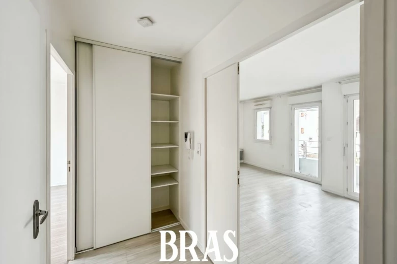Appartement T2 au calme d'une petite copropriété de 2011, de 42.70 m² situé au 3ème étage sans ascenseur et comprenant : entrée avec placard, séjour avec coin cuisine équipée (plaques, hotte) donnant sur balcon, une chambre avec placard donnant sur une terrasse de 9.75m², salle d'eau avec WC.