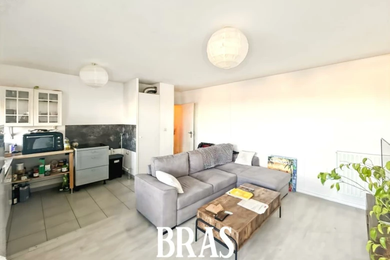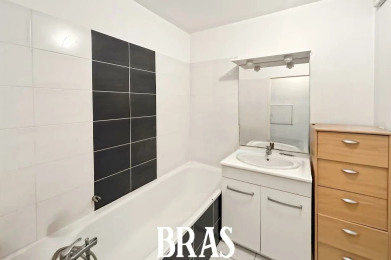 Rue Lilly Reich - Dans une Résidence au calme, appartement de type 2 de 42.80 m², situé au 3ème étage avec ascenseur et comprenant : une entrée, un séjour de 23.50m² avec cuisine aménagée donnant sur un balcon de 8.30m², une chambre avec placard, une salle de bains avec baignoire, meuble vasque et WC.
