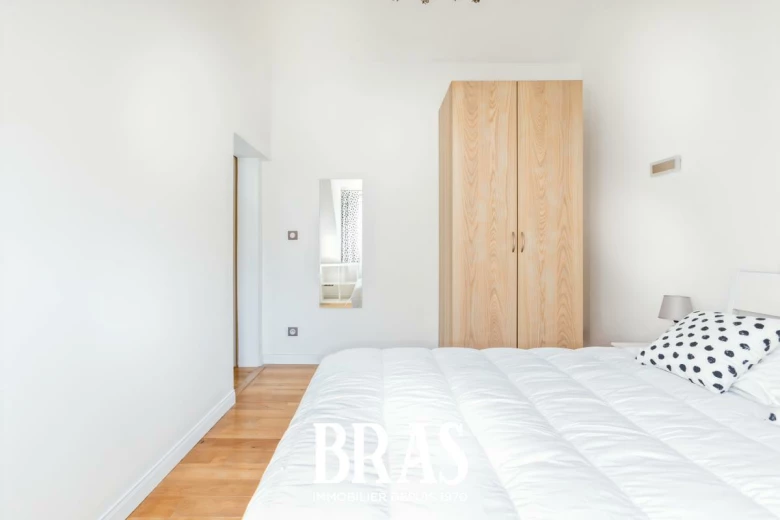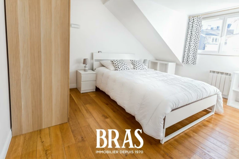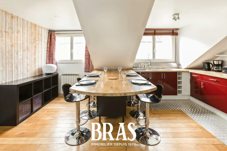 Rue Francklin - Au cœur du centre ville, charmant appartement de type 2 Bis MEUBLÉ de 42,23m² (62,40m² au sol), situé au 4ème et dernier étage sans ascenseur et comprenant : entrée, séjour de 18,82m² avec cuisine aménagée et équipée (plaques de cuisson, hotte, four, micro-onde et réfrigérateur congélateur), une chambre de 10,06m² avec placard, salle de bains avec baignoire, meuble vasque et WC.