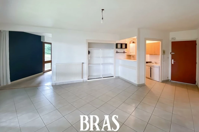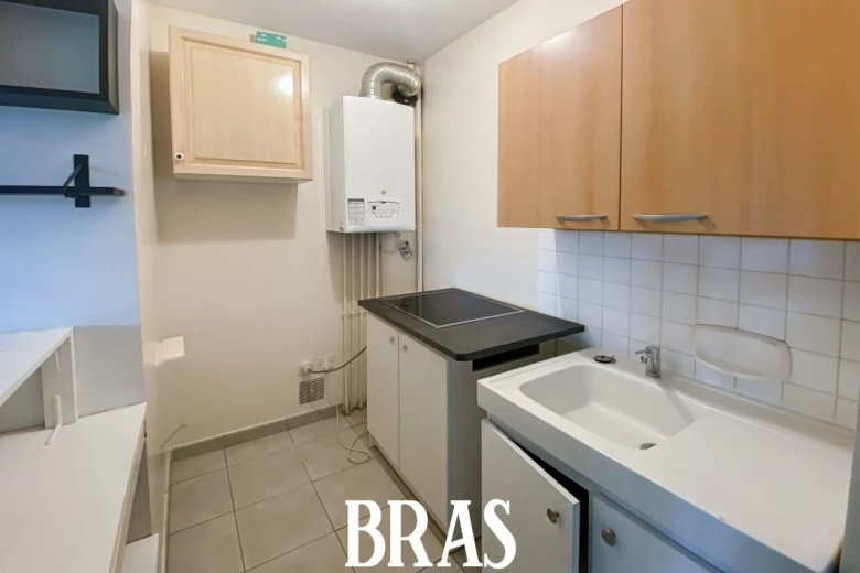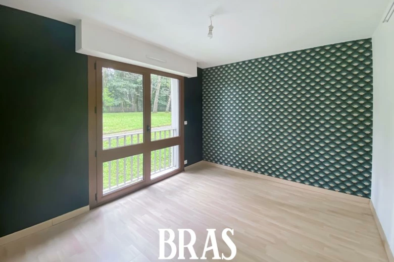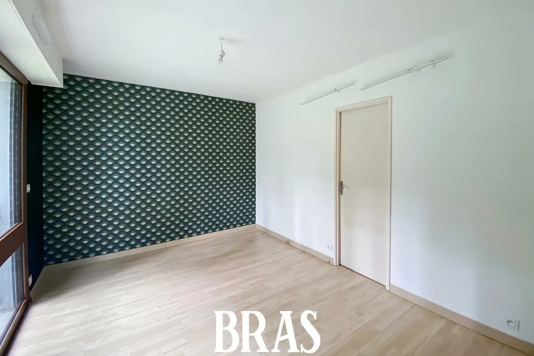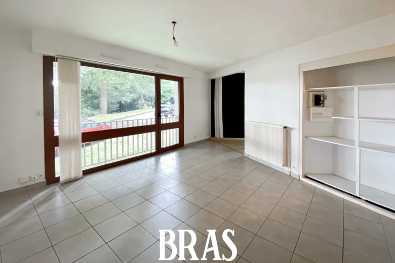 Boulevard Robert Schuman - Dans une résidence arborée et calme, appartement de type 1 bis de 42,88m² situé au rez-de-chaussée sur le jardin et comprenant : une entrée sur pièce de vie de 24,19m² avec cuisine aménagée et équipée (plaques de cuisson), un coin nuit de 13,47m², une salle d'eau avec douche, meuble vasque et WC avec arrivée d'eau pour une machine à laver.