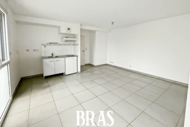 Rue du Petit Bel Air - Dans une résidence de 2012, appartement en très bon état de type 2 de 42.50 m² situé au 2ème étage avec ascenseur et comprenant : une entrée avec placard, une pièce de vie avec cuisine aménagée et équipée (table de cuisson vitrocéramique et hotte et réfrigérateur), une chambre avec placard de 12.92 m², une salle d'eau avec douche, meuble vasque et WC.