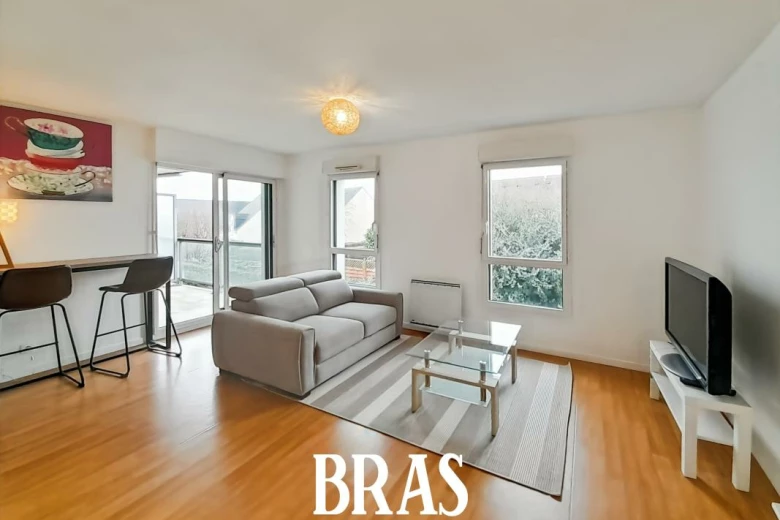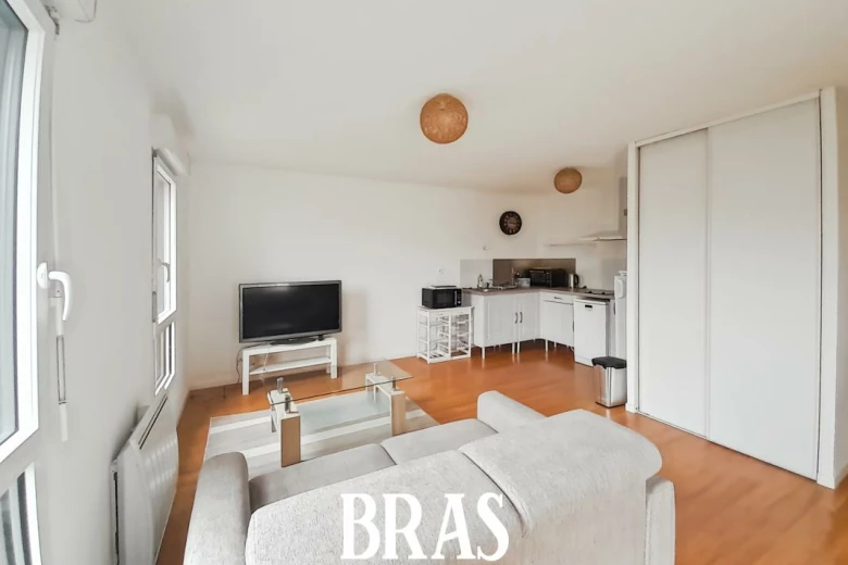 Appartement 2 pièces meublé situé au 2 ème étage avec ascenseur. Comprenant une entrée avec placard desservant un séjour avec coin cuisine aménagé et équipé (plaques de cuisson, lave vaisselle, réfrigérateur, hotte aspirante, lave-vaisselle, four, four à micro-ondes) de 22 m², une chambre (10 m²) avec placard donnant sur un balcon de plus de 5 m², une salle de bains et W.C séparés.