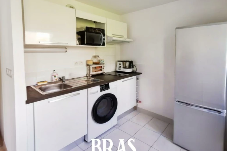 Dans résidence récente labellisée RT2012. Appartement de type 2 situé en rez-de-chaussée surélevé d'environ 43m², comprenant entrée, un dégagement avec placard, une chambre, un séjour avec coin cuisine équipée d'une plaque de cuisson et d'une hotte donnant sur balcon exposé Ouest, une salle d'eau avec WC. Parking en sous-sol sécurisé.
