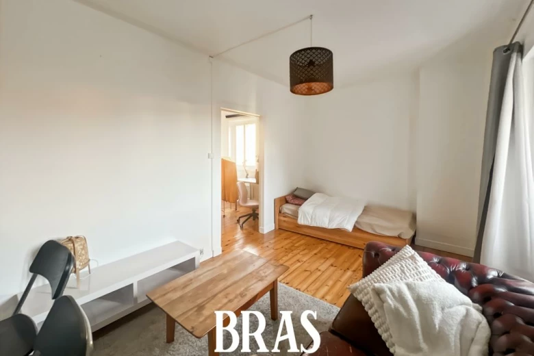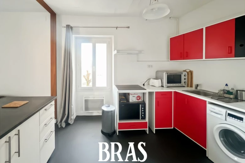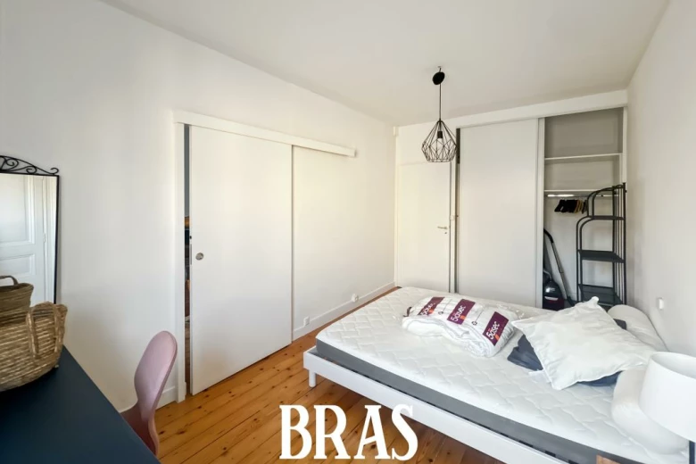 Rue Yves Bodiguel - Idéalement situé, un appartement MEUBLÉ de type 2 de 43.74 m² sur cour, situé au 3ème étage sans ascenseur et comprenant : une entrée, un séjour, une cuisine aménagée et équipée (table de cuisson vitrocéramique, hotte, four, réfrigérateur congélateur, machine à laver), une chambre avec placards, une salle d'eau avec douche, lavabo et WC sanibroyeur. Placard privatif sur le palier.