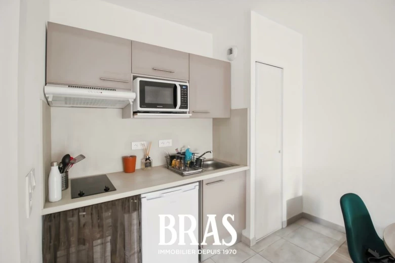 Dans une résidence récente, à proximité des commerces et transports en communs (bus ligne n°75), appartement de type 2 de 43,10m², situé au 2ème étage avec ascenseur et comprenant : une entrée avec placard, pièce de vie de 19,50m² avec cuisine aménagée et équipée (plaques de cuisson, hotte et réfrigérateur table-top), donnant sur une loggia de 5,60m² exposée Nord-Ouest, une chambre de 12,90m² avec placard, une salle d'eau avec douche et meuble vasque, WC séparés.