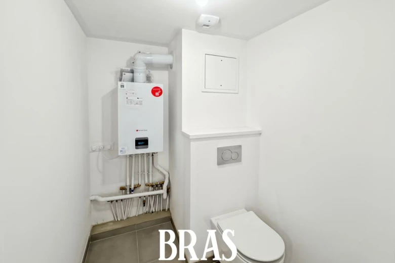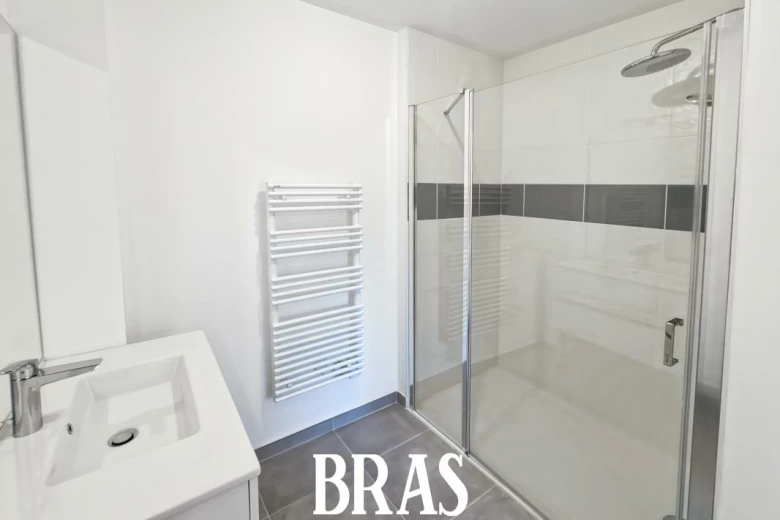 SAINT-NAZAIRE - Ref #676 Appartement neuf de type 2 situé au 1er étage avec ascenseur comprenant entrée avec placard, séjour avec espace cuisine aménagé et équipé (plaques de cuisson et hotte) de 21.98 m² donnant sur une terrasse de 8.20 m² prolongée d'un jardin de 13.60 m², 1 chambre de 11.64 m², salle d'eau, wc séparés parking privé chauffage gaz.