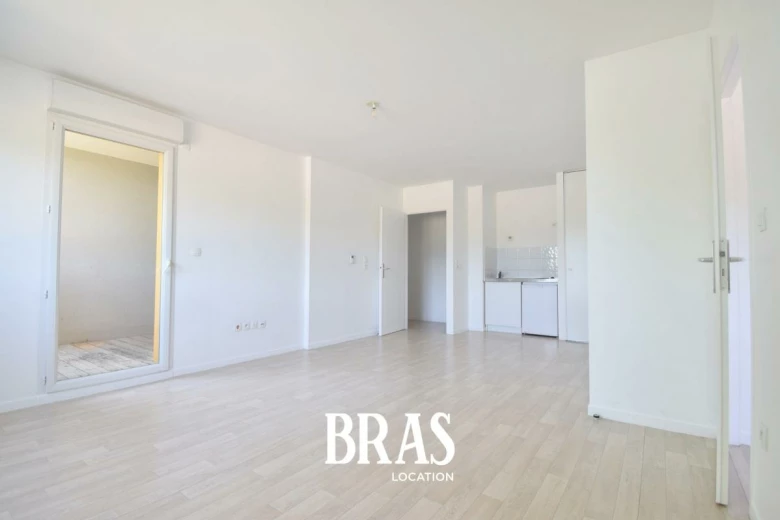 Dans une petite résidence de 2013, situé au 1er étage avec ascenseur, un appartement de type 2 de 44 m² comprenant une entrée, une pièce de vie avec kitchenette (table de cuisson électrique et réfrigérateur table top) donnant sur un balcon sans vis à vis, une chambre, une salle d'eau/WC.