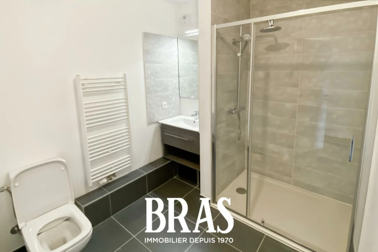 Dans une résidence récente, au 8ème étage avec ascenseur, un appartement de type 2 de 44.26 m² comprenant une entrée avec placard, une pièce de vie avec cuisine aménagée et équipée (plaque de cuisson et hotte) donnant sur une loggia de 6.99 m² exposé Nord-Ouest, une chambre de 12.29 m², une salle d'eau avec douche, meuble vasque et WC.