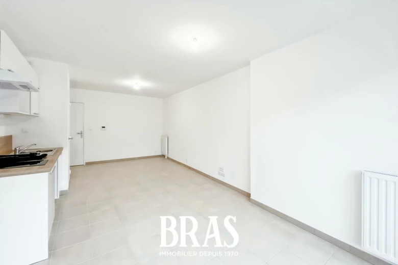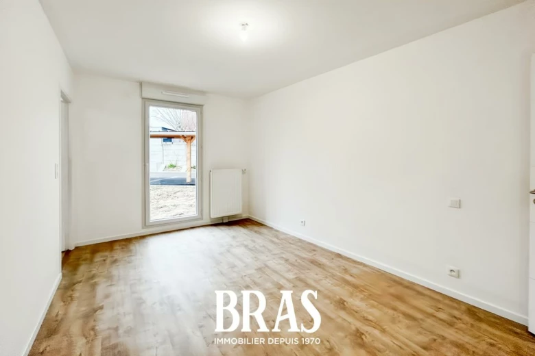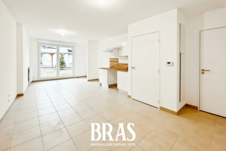Dans une résidence de 2022, appartement de type 2 de 44,07m² situé au rez-de-chaussée et comprenant : entrée sur pièce de vie de 23,70m² avec cuisine aménagée et équipée (plaque de cuisson et hotte), avec cellier attenant, une chambre de 12.99m², une salle d'eau avec douche et meuble vasque, WC séparés.