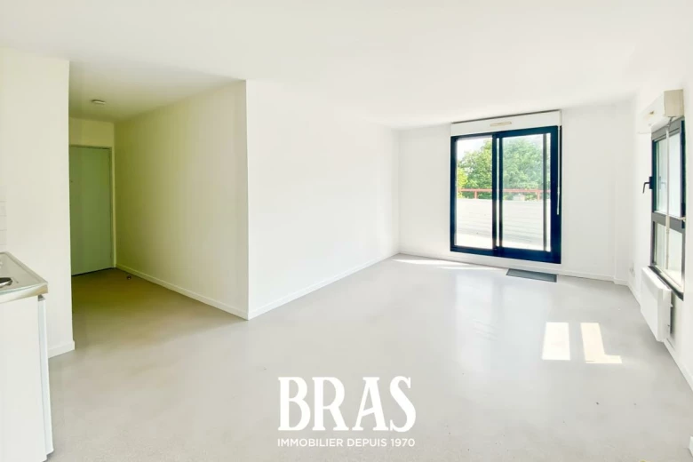 Avenue du Séquoïa - Dans une résidence calme et arborée, à proximité du tramway Ligne 2, commerces et écoles/facultés, appartement de type 2 DUPLEX de 40,50m², situé au 3ème et dernier étage avec ascenseur et comprenant au 1er niveau : une entrée, un séjour de 20,90m² avec avec cuisine aménagée et équipée (plaques de cuisson électriques et réfrigérateur table-top), donnant sur une terrasse partagée de 20m², une salle d'eau avec douche, lavabo et WC.
