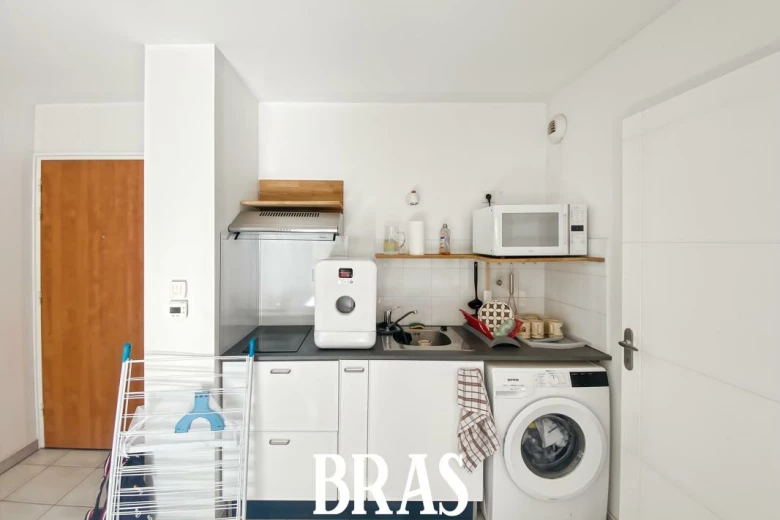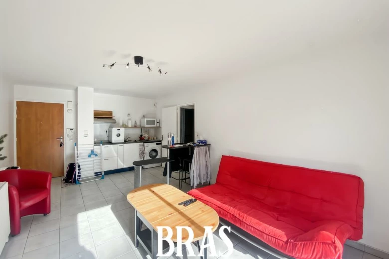 Boulevard des Tribunes - Dans une résidence face au Parc de l'Hippodrome, appartement de type 2 MEUBLÉ de 45,36m² situé au 1er étage sur cour avec ascenseur et comprenant : une pièce de vie de 22,46m² avec cuisine aménagée et équipée (plaque de cuisson vitrocéramique, hotte, micro ondes, lave linge et réfrigérateur congélateur), donnant sur un balcon de 10,76m² exposé Ouest, un dégagement desservant une chambre de 12,07m² avec placard, une salle d'eau avec douche, meuble vasque et WC.