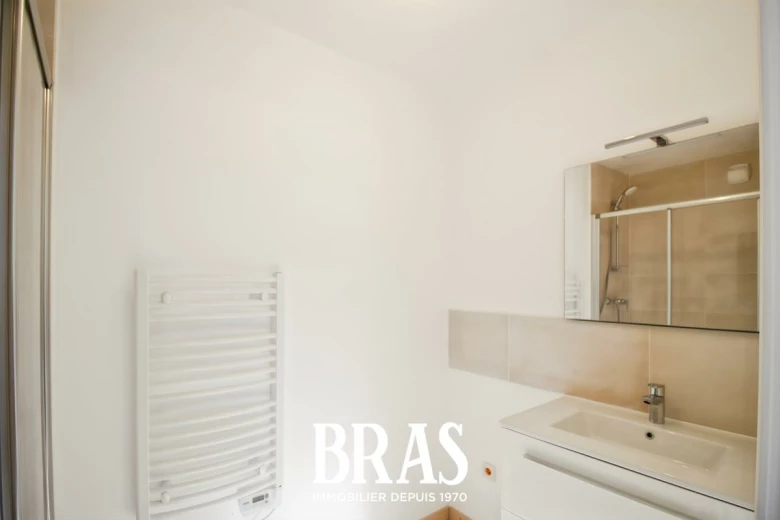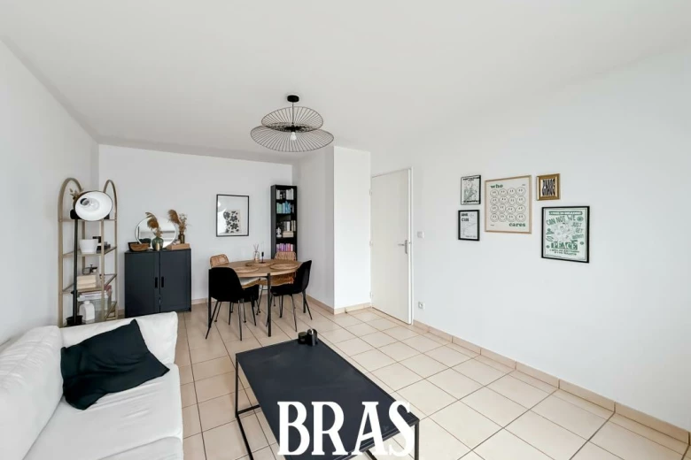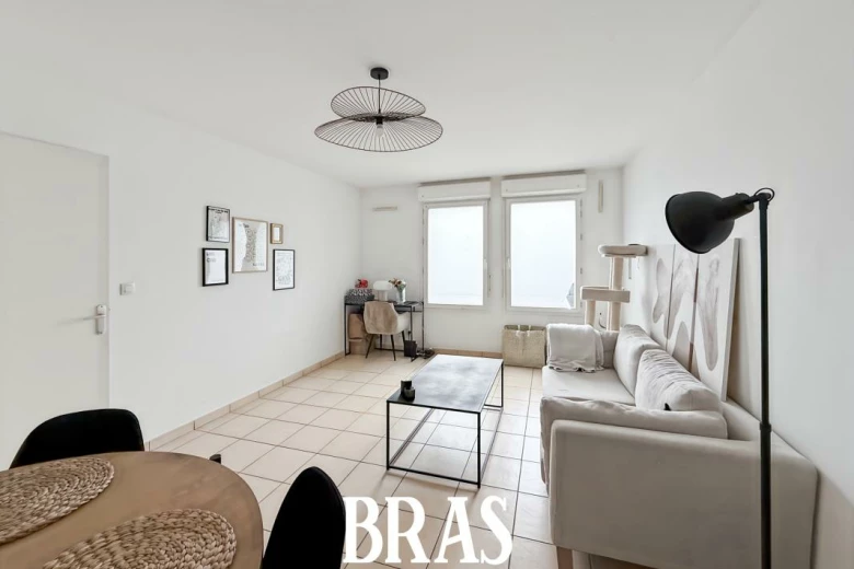 Situé au rez-de-chaussée d'une résidence de 2002, un appartement type 2 de 46.89m², non meublé comprenant une entrée, une pièce de vie, une cuisine séparée, aménagée et équipée (plaques de cuisson, réfrigérateur top, hotte) , une chambre, une salle d'eau avec douche et meuble vasque et un WC séparés.