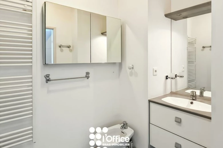 Dans une belle résidence de centre-ville avec accès sécurisé, situé au 1er étage avec ascenseur. Un appartement de type 2 d'une superficie de 46.55 m² très lumineux comprenant : une entrée avec placard, un séjour avec cuisine aménagée et équipée d'environ 22 m², une chambre de 12,64 m², une salle d'eau (douche), WC séparé. Un local vélo privatif. Possibilité de parking en sus 35 euros.
