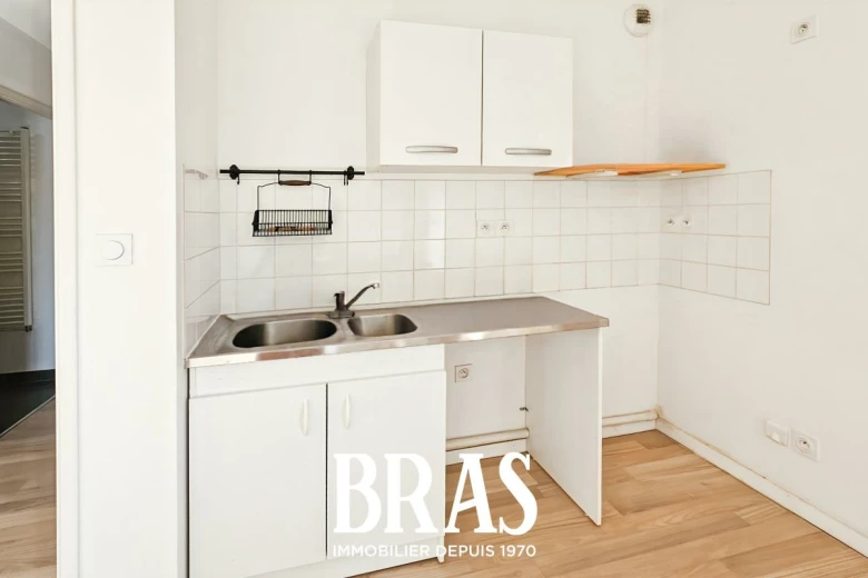Coeur de Ville, proche de la Mairie, au 1er étage avec ascenseur, T2 de plus de 47 m², comprenant une entrée avec placard, un séjour de 23.36 m² avec un espace cuisine aménagée , un balcon de 6.01m² exposé Ouest, une chambre donnant sur balcon, une salle d'eau et WC séparé.