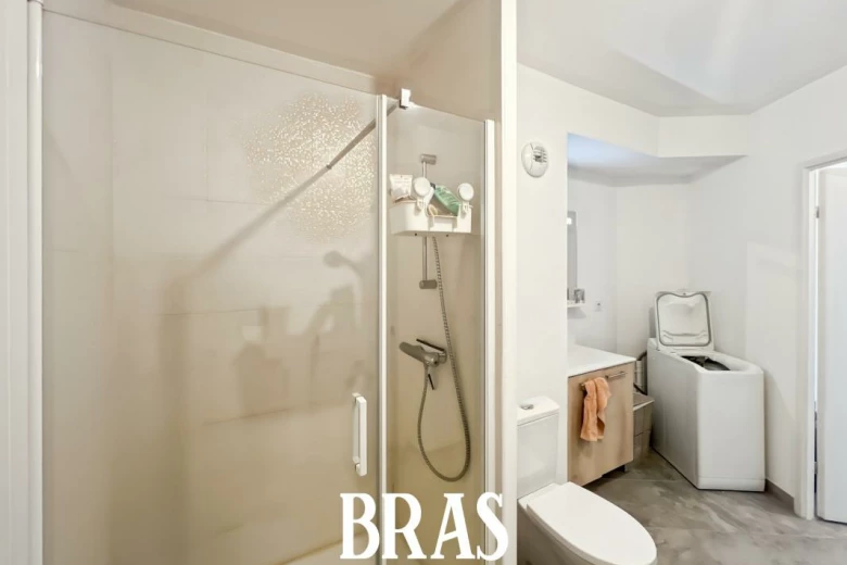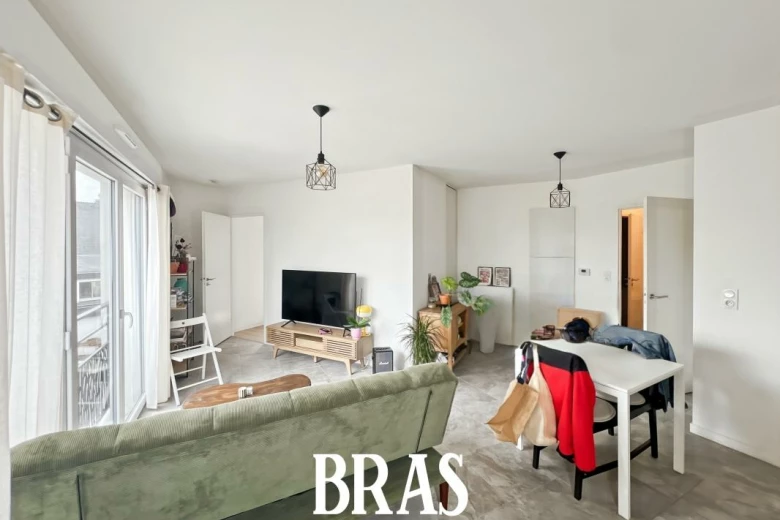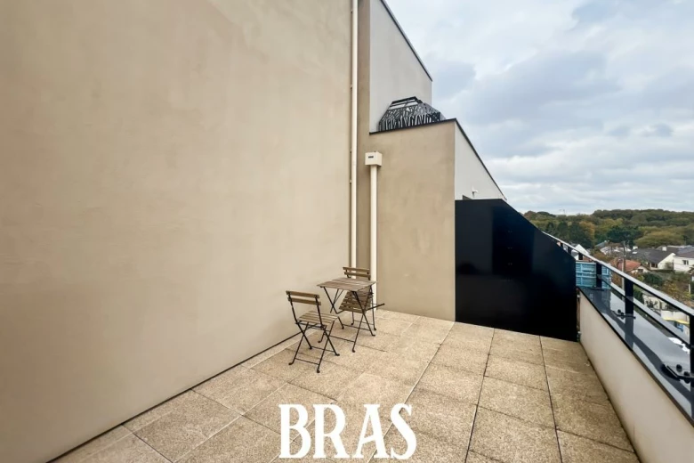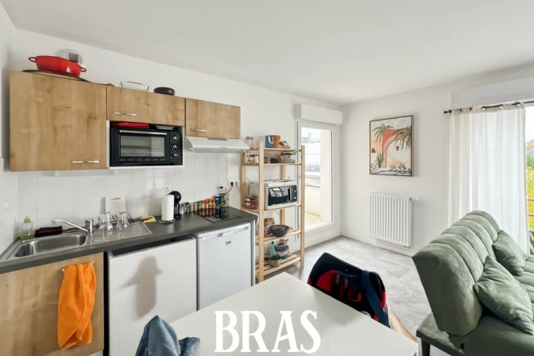 Dans une résidence récente et sécurisée, appartement de type 2 de 48m² situé au 2ème étage avec ascenseur et comprenant : une entrée, une pièce de vie avec cuisine aménagée et équipée (plaques de cuisson et hotte), donnant sur une terrasse de 14m², une chambre avec placard, une salle d'eau avec douche, meuble vasque et WC.