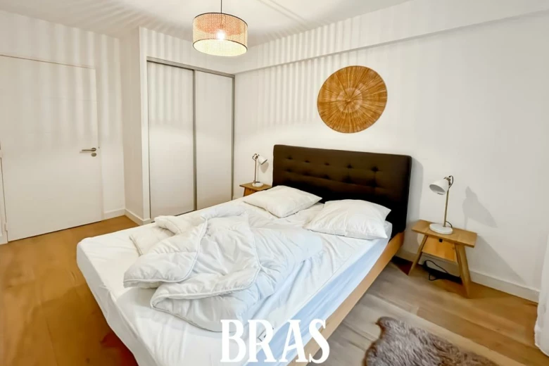 Allée Michel Chaillou - Dans une résidence récente de standing, un appartement de type 2 MEUBLÉ de 48,27m² situé au 2ème étage avec ascenseur et comprenant : entrée avec placard, pièce de vie de 27,80m² avec cuisine aménagée et équipée (plaque de cuisson vitrocéramique, hotte, four, réfrigérateur congélateur, lave vaisselle), donnant sur loggia de 5,14m² exposée Sud-Ouest, une chambre de 12.44m² avec placard, salle de bains attenante avec baignoire, meuble vasque et lave-linge, WC séparés.