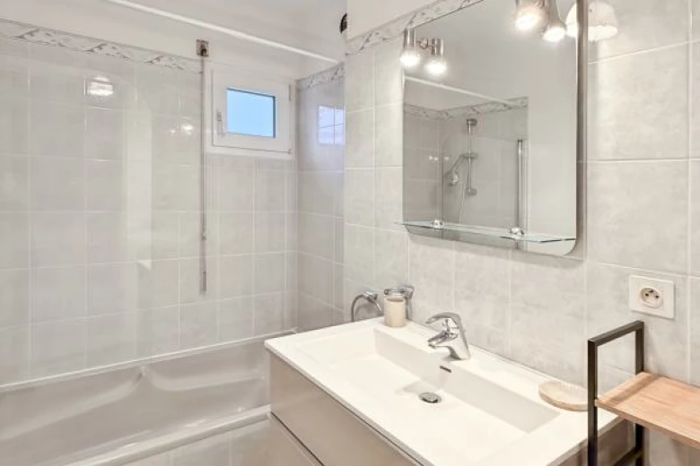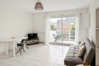 Il comprend une entrée indépendante avec placards, une cuisine entièrement équipée ( réfrigérateur/congélateur, four, micro-ondes, plaques et hotte, machine à laver), un grand séjour de 20 m² avec une banquette convertible en lit (120/190cm) et donnant sur un grand balcon exposé sud/est et sans vis à vis.
