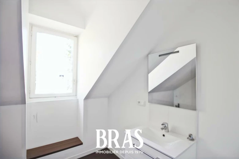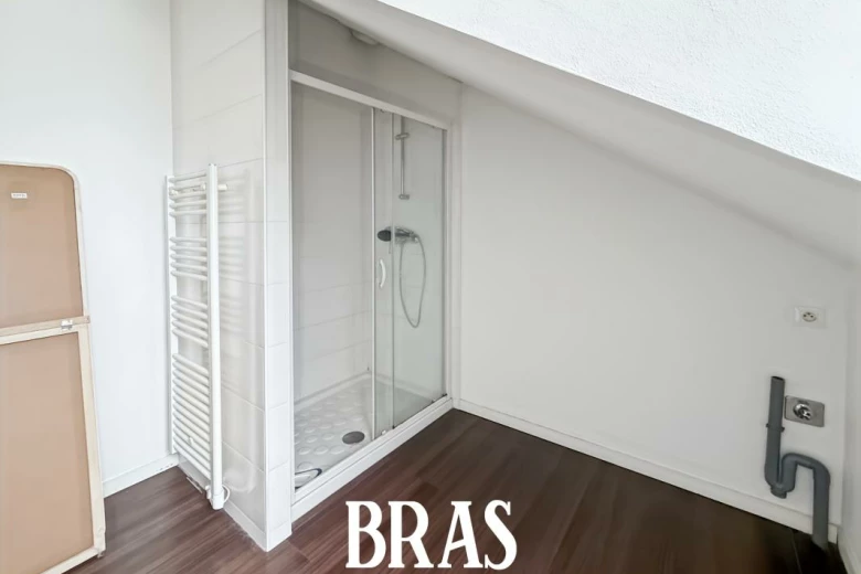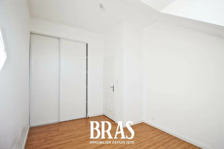 Mairie de Chantenay - À proximité immédiate des commerces de proximité, des transports en communs (ligne bus n°11, tramway ligne1) et de la Mairie de Chantenay, bel appartement de type 2 de 44.90m² (61m² au sol), situé au 2ème et dernier étage sans ascenseur comprenant : une entrée avec placard, un séjour de 22,22m² avec cuisine aménagée et équipée (hotte et plaques de cuisson électriques), une chambre de 10,51m² avec placard, une salle d'eau avec douche, meuble vasque et branchement machine à laver, WC séparés.