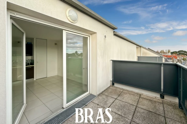 Rue des Six Aqueducs - Dans petite résidence récente, appartement de type 2 de 52.60m² situé au 3ème et dernier étage avec ascenseur et comprenant : une entrée avec placard, un séjour avec cuisine aménagée et équipée (réfrigérateur, plaques de cuisson, four et hotte) de 26 m² donnant sur une terrasse orientée Sud de 5.80 m², une chambre, une salle d'eau avec douche, meuble vasque, emplacement machine à laver, WC séparés.