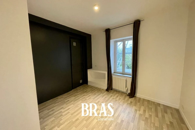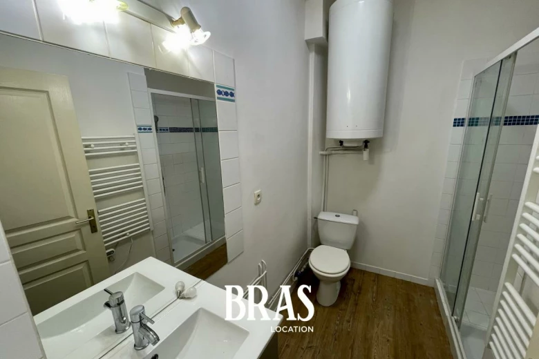 Une chambre avec placard, Une salle d'eau avec WC, douche et vasque sur meuble. Un dégagement avec placards.