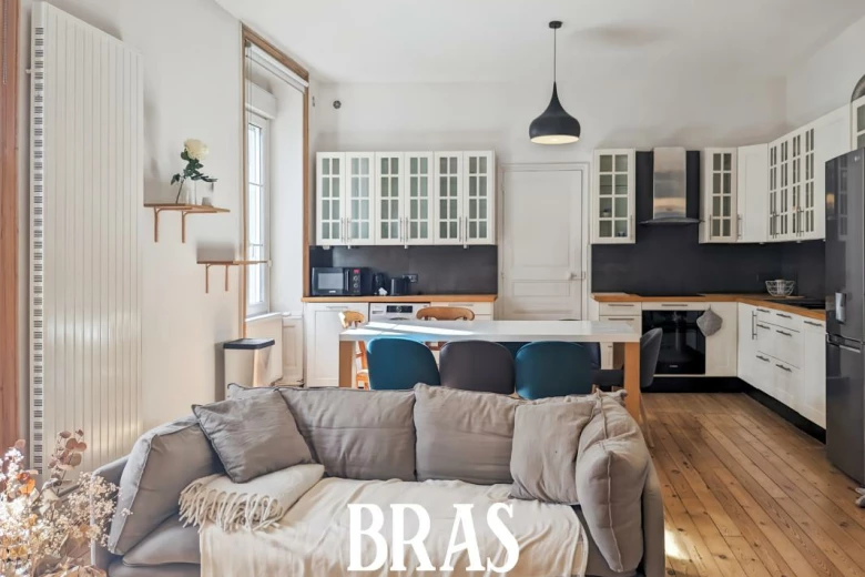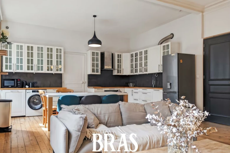 Vannes préfecture, au 1er étage sans ascenseur d'un petit immeuble, appartement meublé 2 pièces de 55.79 m² en très bon état. Comprenant : une pièce de vie avec cuisine aménagée et équipée, une chambre, une salle d'eau avec WC. Une place de parking extérieure et une cave complètent le bien.