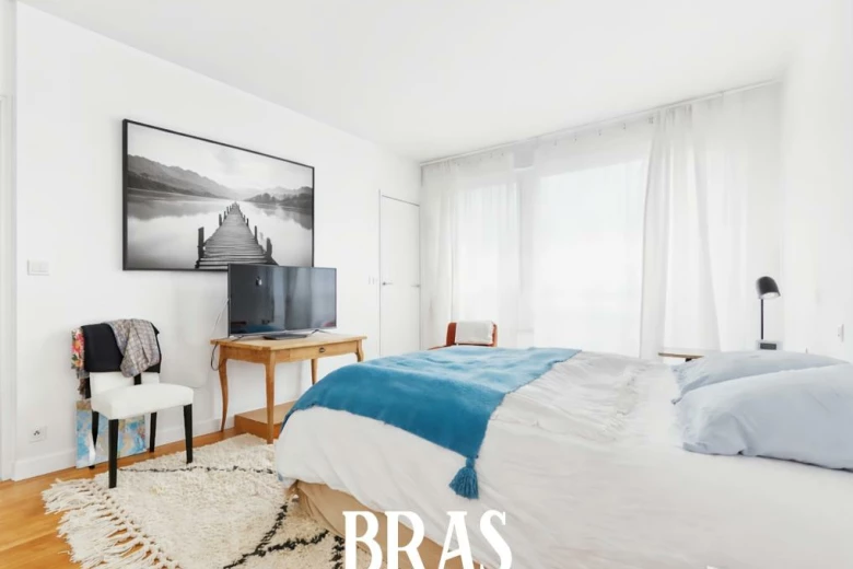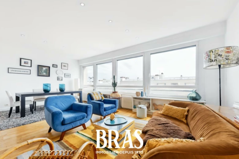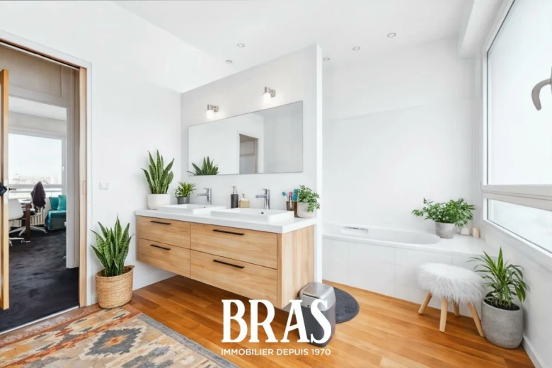 Rue du Calvaire - Au cœur du centre ville, bel appartement de type 3 de 110,12m² NON MEUBLÉ situé au 5ème étage avec ascenseur et comprenant : entrée, séjour de 29,57m², cuisine séparée, aménagée et équipée (four, table de cuisson, lave vaisselle) de 12,59m² avec buanderie, dégagement/coin bureau, dressing, 2 chambres de 18,04m² et 9.68 m², une salle de bains avec baignoire et double meuble vasque, WC séparés