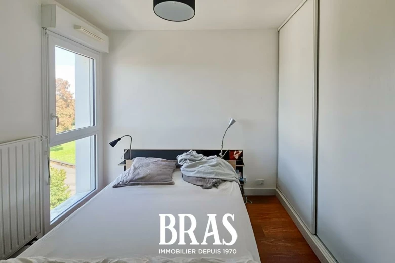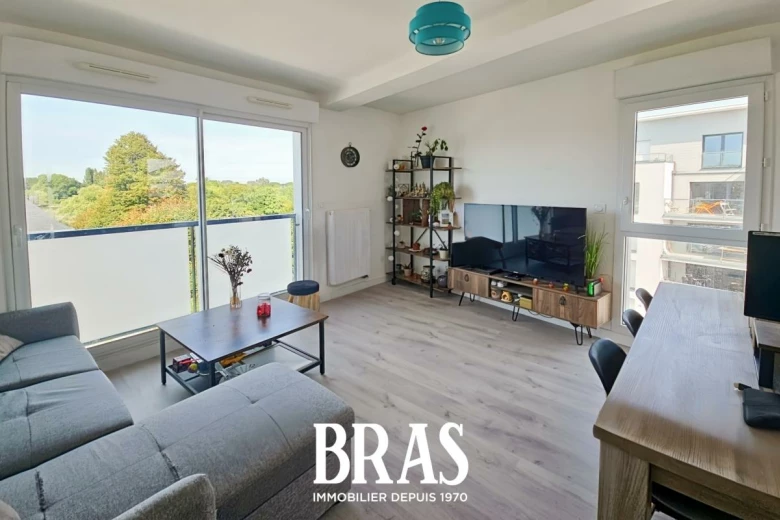 Appartement de Type 3 de 66m² environ situé au 3ème étage avec ascenseur. Comprenant: une entrée avec placard, un séjour avec cuisine aménagée et équipée d'une plaque de cuisson, d'un four et d'une hotte, donnant sur le balcon avec vue sur Loire, 2 chambres dont une avec placard, une salle de bains et des WC séparés.