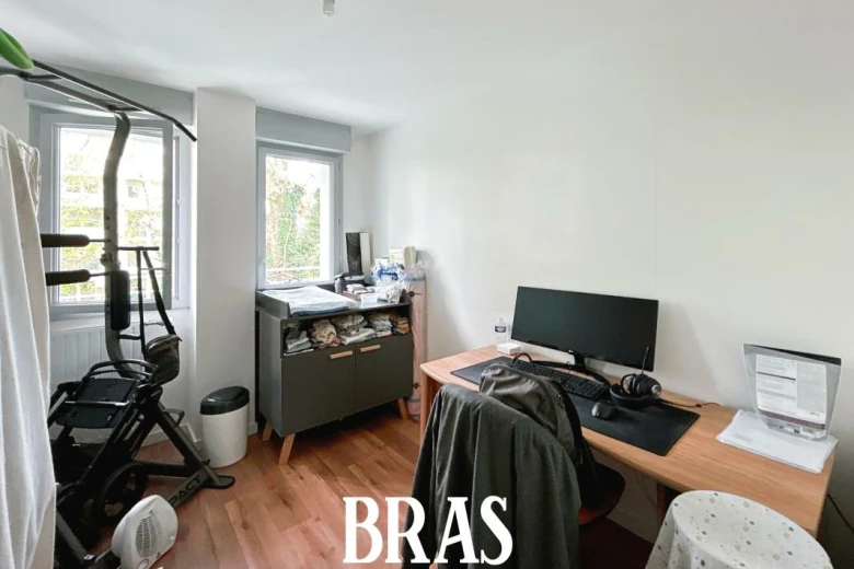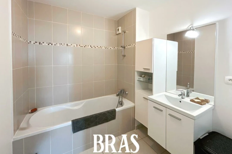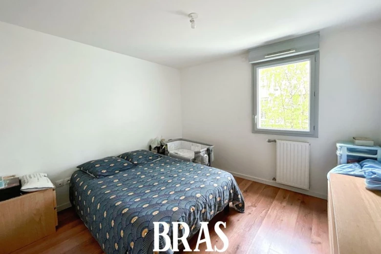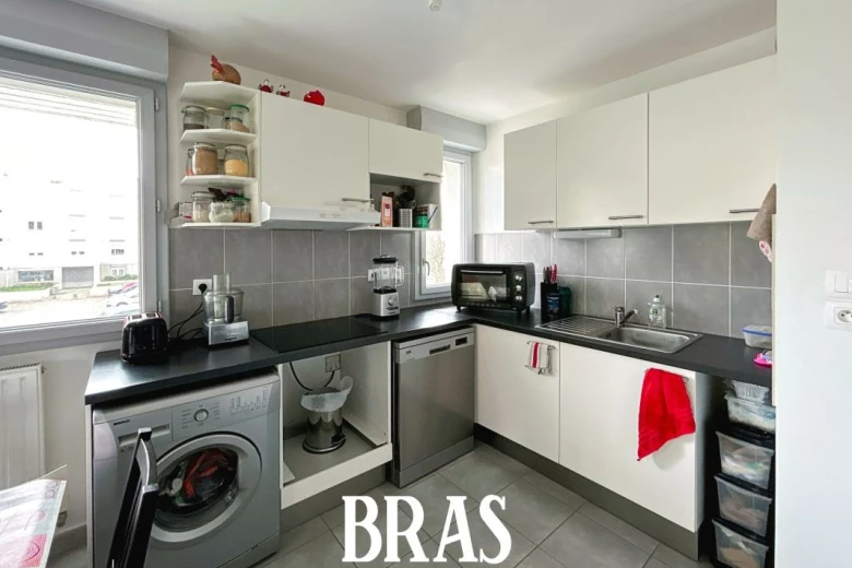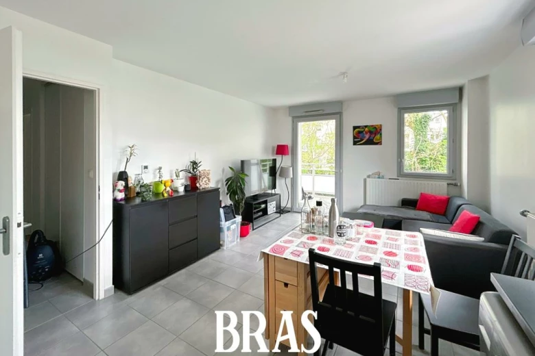 Dans une résidence, appartement de type 3 de 52,79m² situé au 1er étage avec ascenseur et comprenant : entrée avec placard, séjour de 20,13m² avec cuisine aménagée et équipée (plaques de cuisson et hotte), donnant sur un balcon de 6,25m² exposé Est, dégagement, 2 chambres de 11,45m² et 8,32m² dont une avec placard, une salle de bains avec une baignoire et meuble vasque, WC séparés.